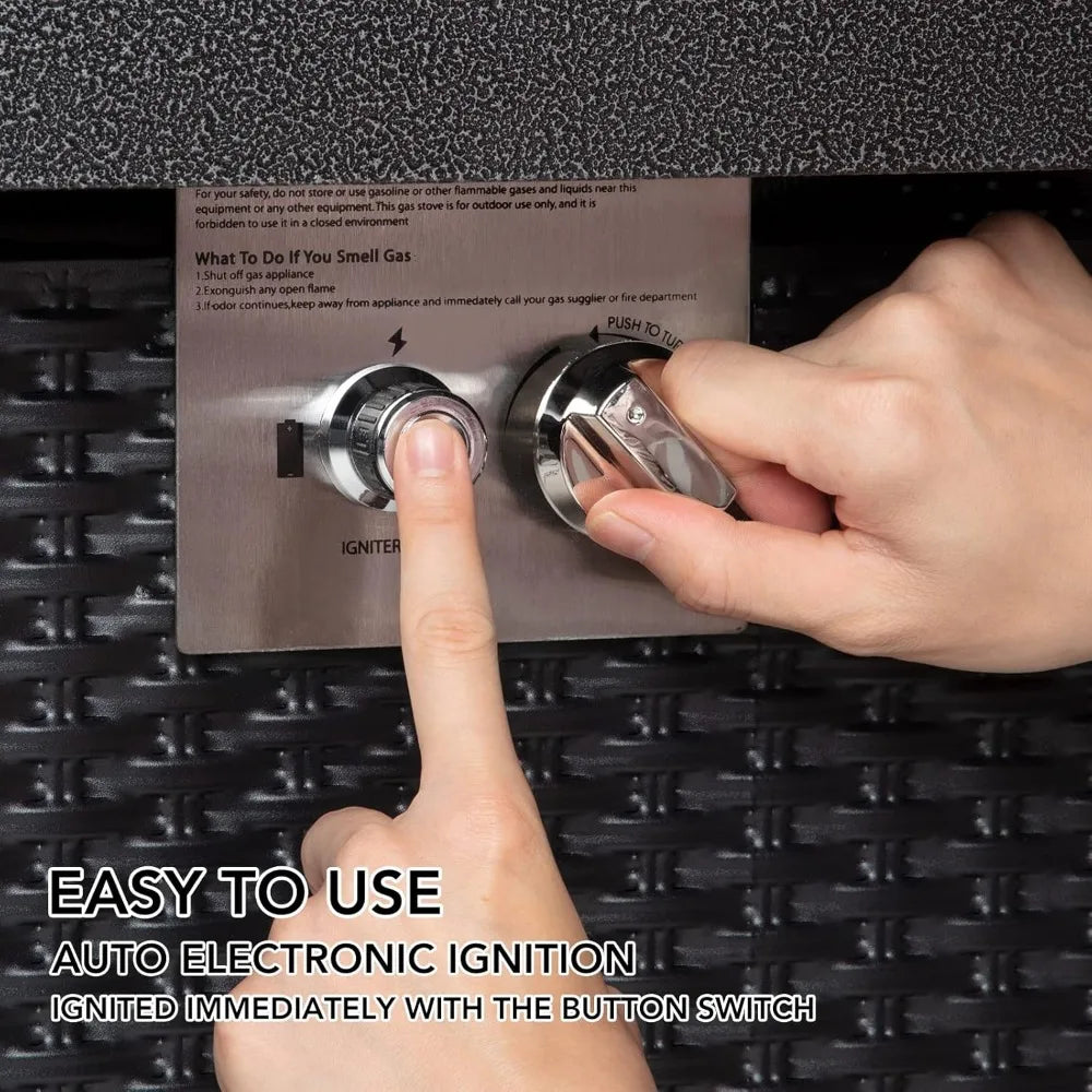 44 Inch Propane Outdoor Fire Pit Table with Cover & Rain Cover