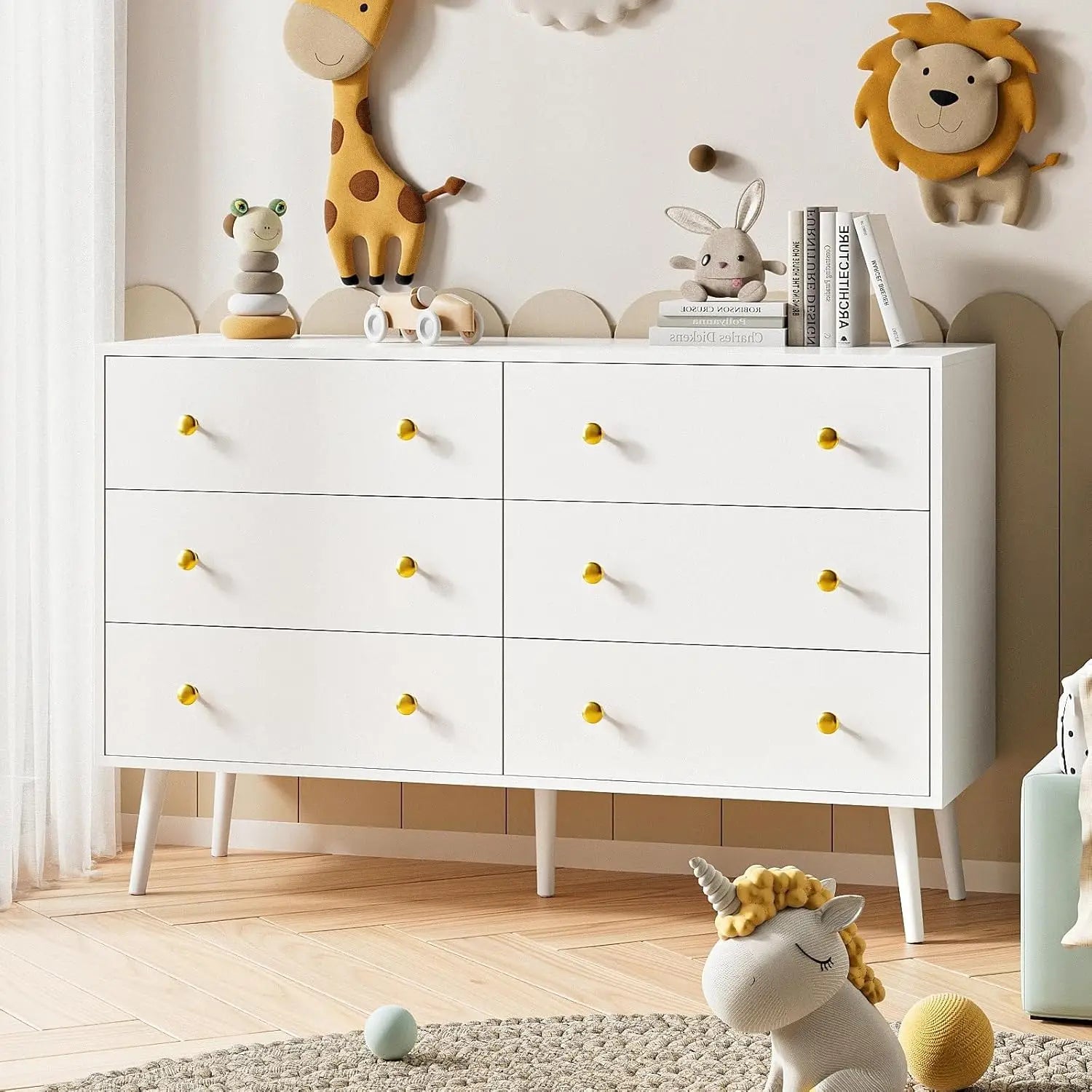 - 【Modern Design】Featuring a chic white finish paired with a natural wood frame, this 6 drawer dresser is accented with sleek metal handles and legs. Its versatile design fits any room and adds refinement to any living space.