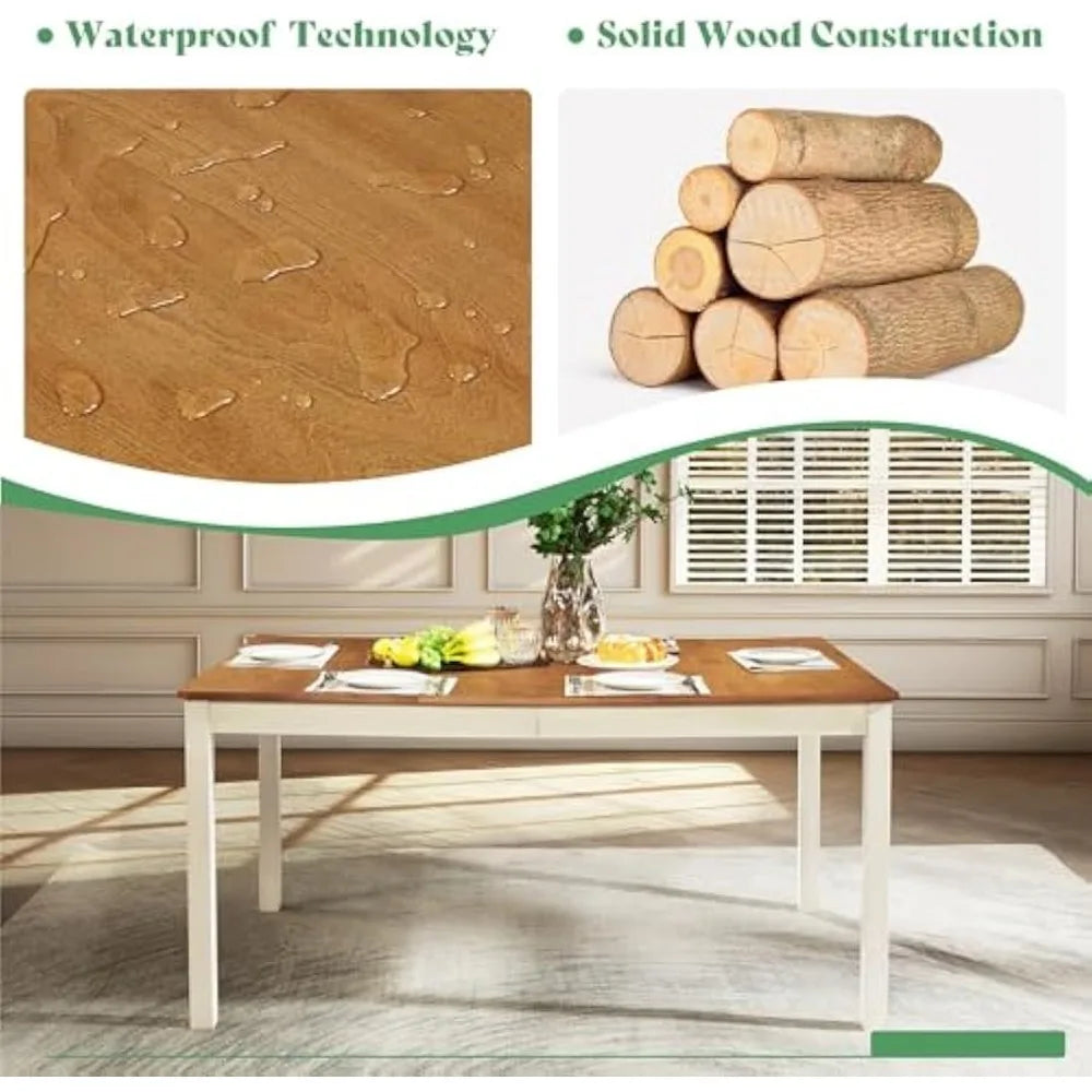 7-Piece Farmhouse Dining Table Set with 6 Upholstered Chairs
